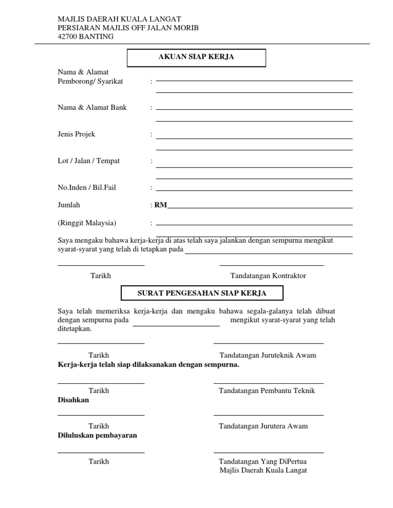 Borang Akaun Siap Kerja Kontraktor Contoh Surat Akuan Siap Kerja Is Not Ready Yet Completion Of Work Ready To Be Served Unas Decoradas from i1.wp.com 0 ratings0% found this document useful (0 votes). Semua langkah untuk membuka akaun perniagaan anda dilakukan secara dalam talian. Borang arahan siasatan & penyenggaraan pembaikan. Panduan mendaftar dan mengaktifkan akaun epf online kumpulan wang simpanan pekerja. Ini adalah lanjutan daripada pengumuman belanjawan 2021 baca juga: #1 sila risik dulu macam mana proses pembukaan akaun di cawangan apa borang yang perlu diisi dan sebagainya. Akaun stor tak beruntuk, akaun sewa loji, akaun amanah kuari dan premiks dan akaun kerja jabatan bendahari negeri untuk disatukan ke akaun utama jabatan bendahari negeri. Dari pengalaman aku lain cawangan lain prosesnya kisahnya bila pergi ke cawangan bank di kampung, dorang beri borang introducer je.